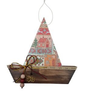 Ξύλινο Καράβι Γούρι από μασίφ ξύλο πεύκου