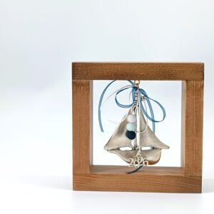Ξύλινο Γούρι με διακοσμητικό μεταλλικό στοιχείο καράβι