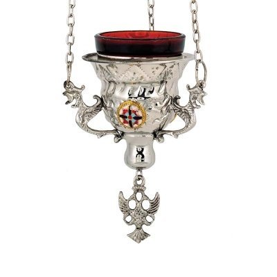 Καντήλι κρεμαστό επινικελωμένο μικρό, με σμαλτάκι.
