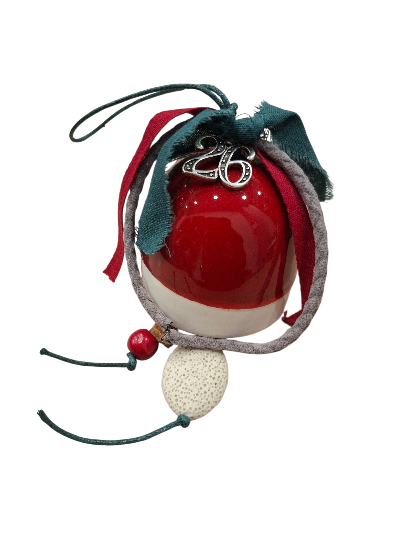 Κεραμική διακοσμητική καμπάνα, διακοσμημένη με χάντρες, κορδέλες και στοιχείο 2026.
