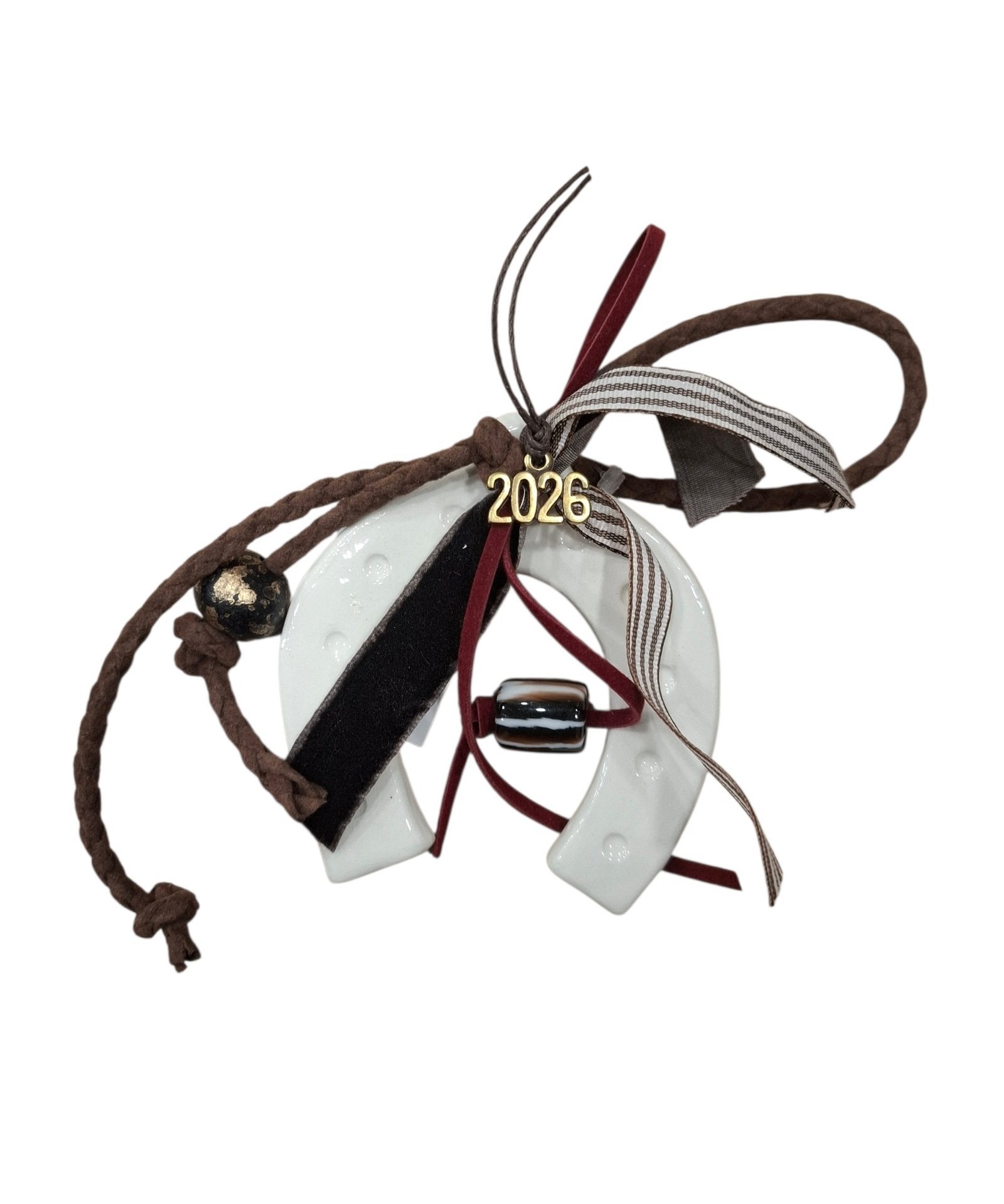 Κεραμικό διακοσμητικό πέταλο, διακοσμημένο με χάντρες, κορδέλες και στοιχείο 2026.
