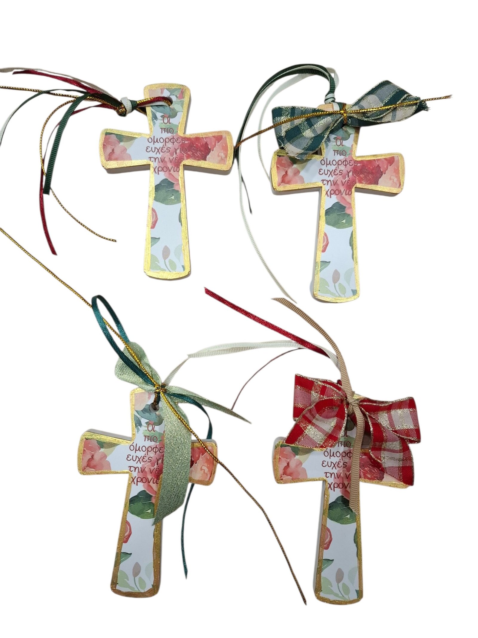 Διακοσμητικός σταυρός από πορσελάνη, διαστάσεων 12x8cm, με μοναδική εκτύπωση λουλουδιών.
